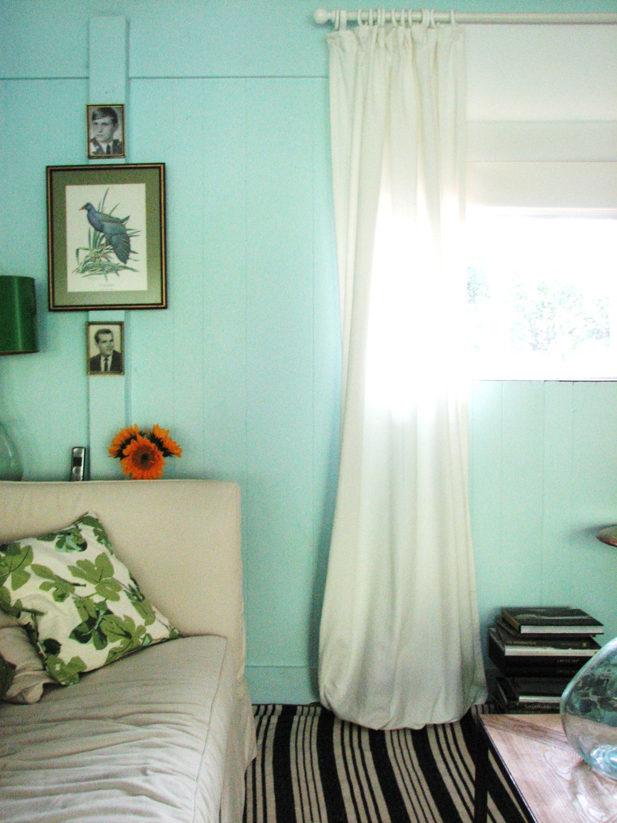 BUT it was completely the wrong feeling. I loooove that rug but not in my family room. I wanted fresh & fun & happy (we hang with the kids here a lot) and the rug & curtains were taking the room into a more serious, richer place. Not okay. So, I tried out the PB peytons in french ivory and with the lining and double panels, they still felt to “decorated” for me so up went my old cotton Ikea curtains. I added additional rings so they wouldn’t sag as much and am totally fine with them now after my fiasco. (Just need to hem them! 😉