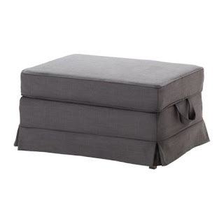Here’s the Ektorp storage ottoman in a gray slipcover: