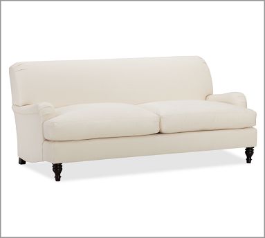 Going a little bit up in the budget, there are some options I like from Pottery Barn. I haven’t checked them out in person but they look great. My favorite is the Carlisle Sofa, their English arm sofa. This apartment sofa (only 78″) is pretty: