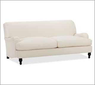 {Shown here in beige for $599. But it starts at $399 for a washable white slipcover and comes in multiple fabrics. Joni from Cote de Texas hass mentioned this baby before and it really can be the perfect backdrop sofa. If they slimmed out those roll arms just a little, it would be much betta!!}