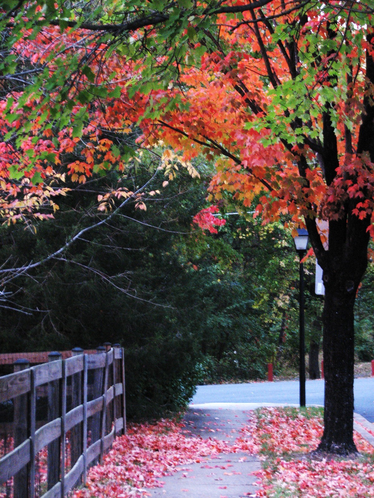 {The red maple leaves hit the sidewalks in our neighborhood last week}