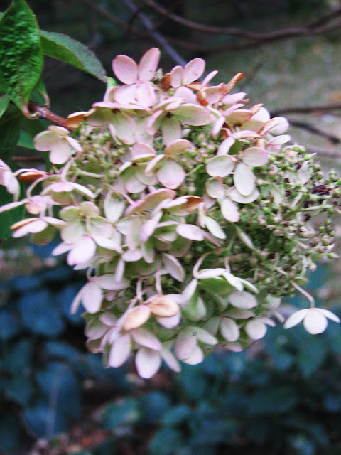 {The hydrangeas have their reddish tinge}