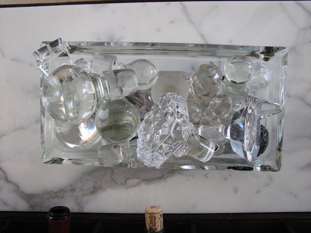 {One of my favorite collections she has is her collection of glass & crystal bottle stops that she keeps at the drink station… so beautiful.}